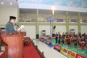 TEGAL – Servis pertama Plt. Walikota Tegal,  Drs. H.M. Nursholeh, M.M.Pd atau yang akrab dipanggil Kang Nursholeh mengawali pembukaan Kejuaraan Bulutangkis Pancasila CUP 1 Se-Jateng – DIY tahun 2017 bertempat di Auditorium UPS, Senin (18/12/2017).