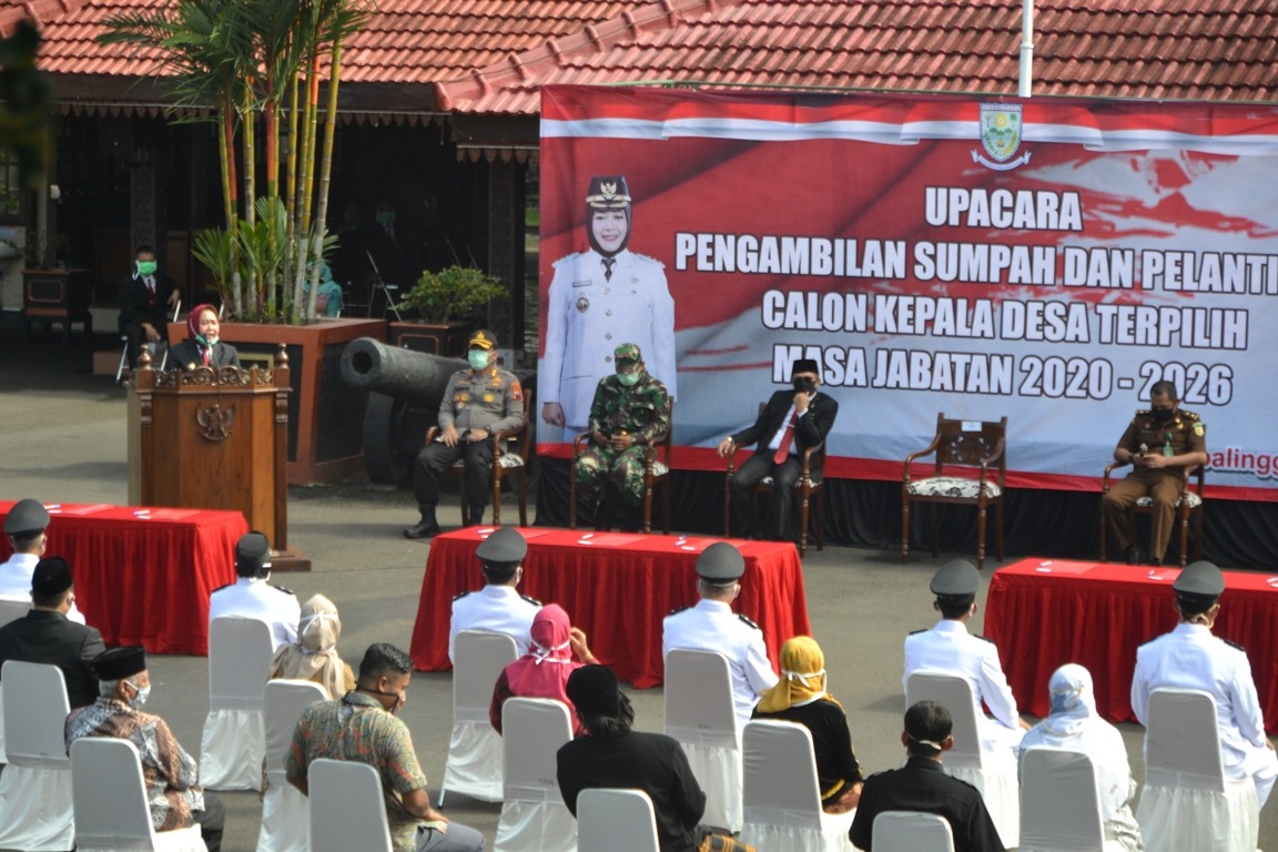 “Di tengah pandemi Covid-19, saya berpesan, bapak, ibu setelah ini harus mengambil langkah-langkah strategis, upaya pencegahan dan penanganan. Karena saat ini menjadi agenda prioritas kita, baik di tingkat kabupaten, provinsi, maupun pusat,” kata Bupati Purbalingga Dyah Hayuning Pratiwi saat melantik Kades di halaman Pendapa Dipokusuma, Kamis (9/4/2020).