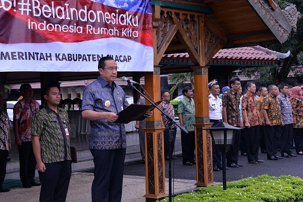 Pada upacara Hari Bela Negara, Bupati membacakan teks Pancasila dan dibacakan pula Ikrar Bela Negara oleh petugas. Hadir dalam kesempatan tersebut, Wakil Bupati Syamsul Auliya rahman, para pejabat dijajaran Pemkab Cilacap dan undangan lain.