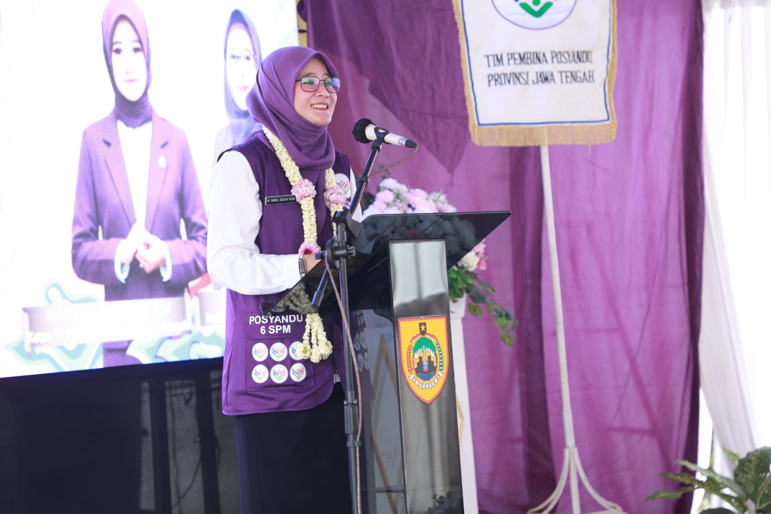 SRAGEN – Ketua Tim Pembina (TP) Posyandu Provinsi Jawa Tengah, Nawal Arafah Yasin, meluncurkan tiga desa sebagai pilot project implementasi Posyandu enam bidang Standar Pelayanan Minimum (SPM).