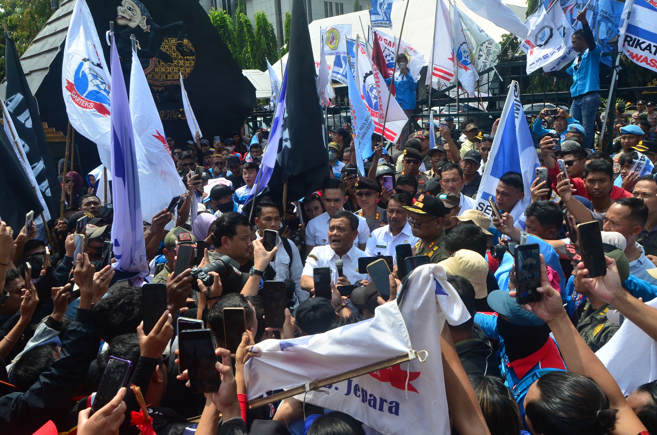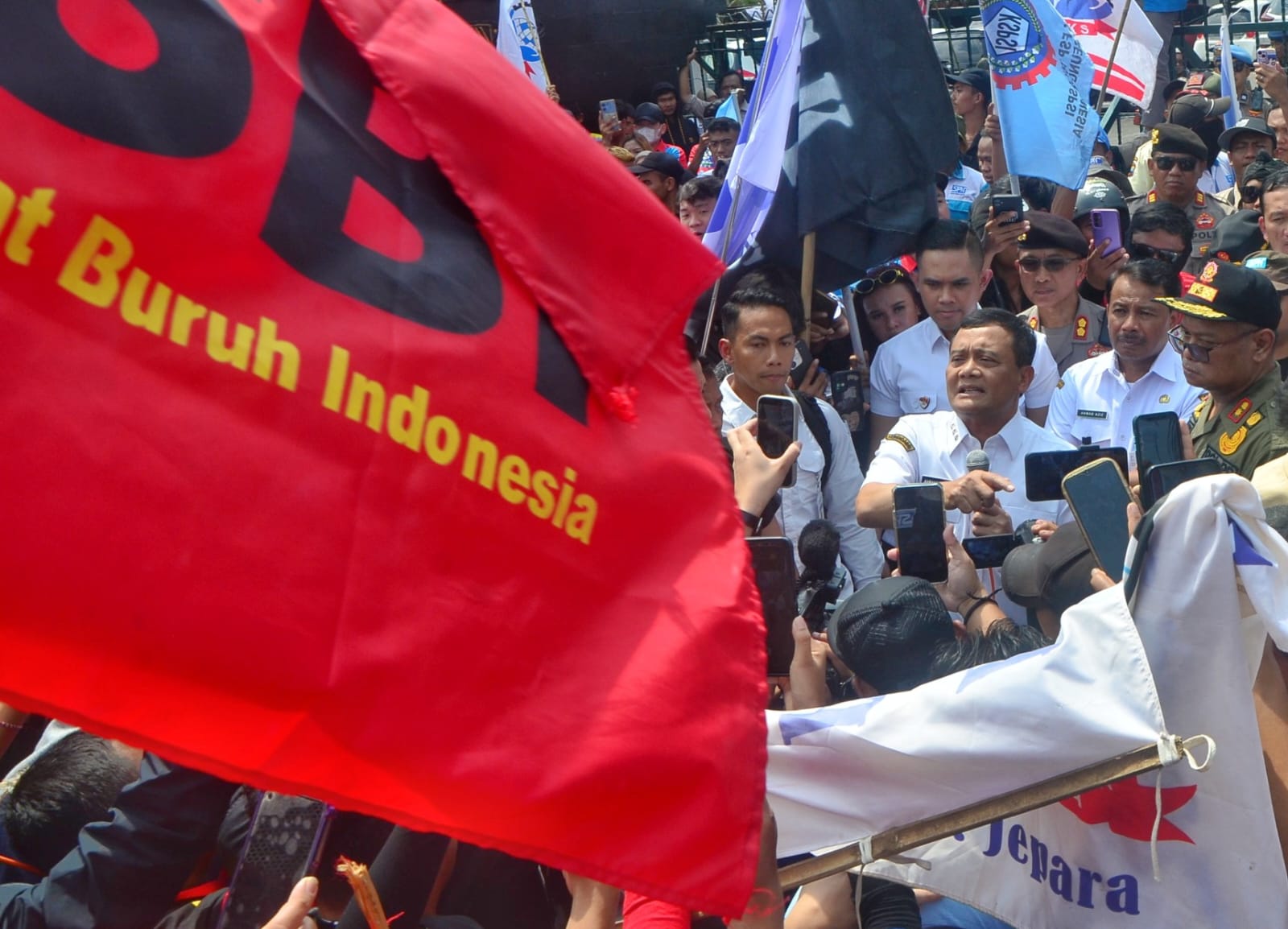 SEMARANG – Gubernur Jawa Tengah, Ahmad Luthfi menemui para buruh yang melakukan aksi demontrasi usai mengumumkan penetapan Upah Minimum Provinsi (UMP), Upah Minimum Sektoral Provinsi (UMSP), Upah Minimum Kabupaten/Kota (UMK), dan Upah Minimum Sektoral Kabupaten/Kota (UMSK) 2026, Rabu (24/12/2025).